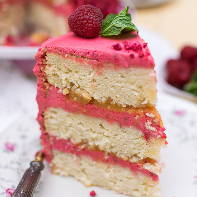 Himbeertorte mit Kokosböden und Lemon Curd